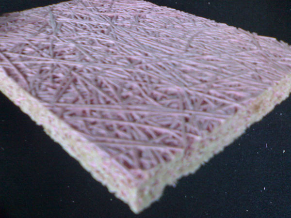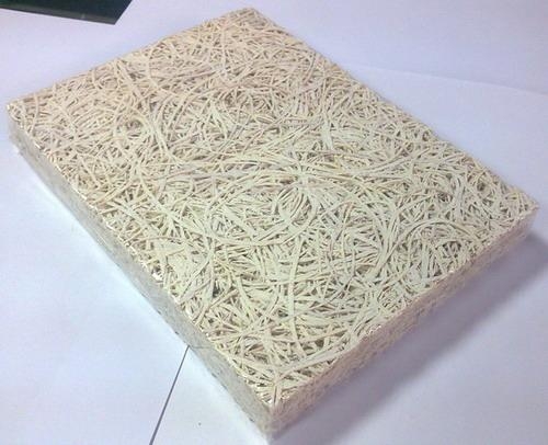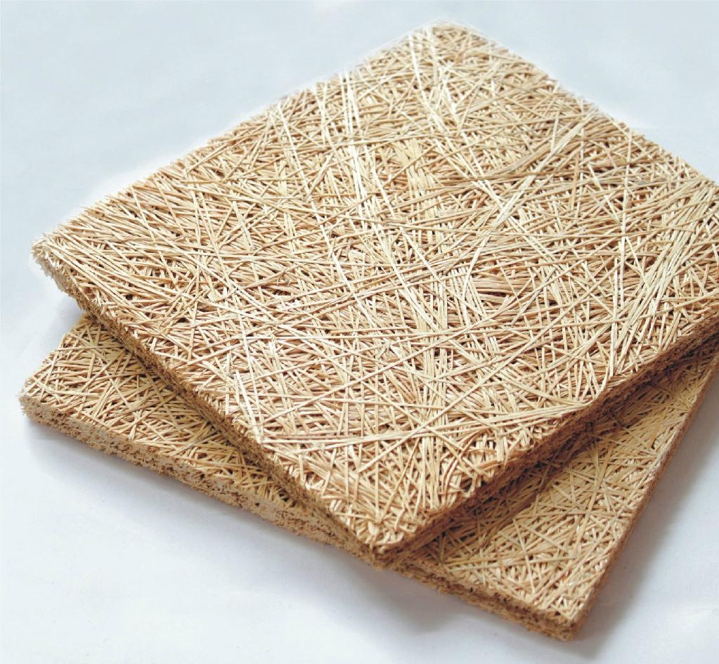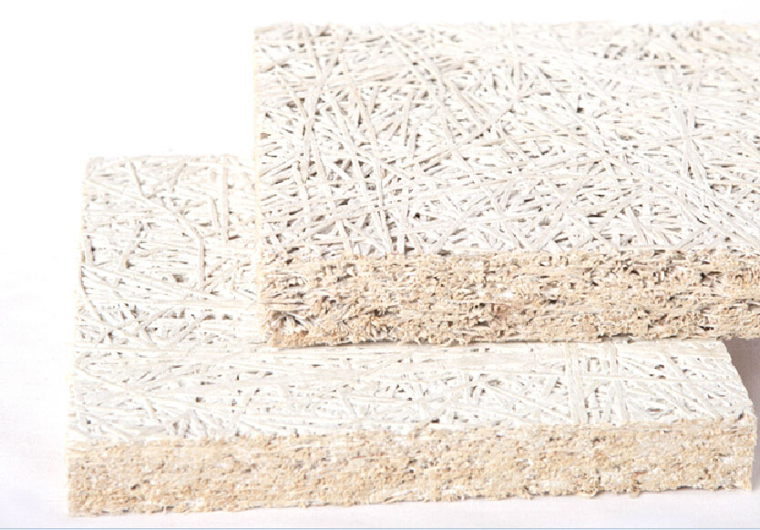 木丝吸音板以白杨木纤维为原料,结合独特的无机硬水泥粘合剂,采用连续操作工艺,在高温、高压条件下制成。
