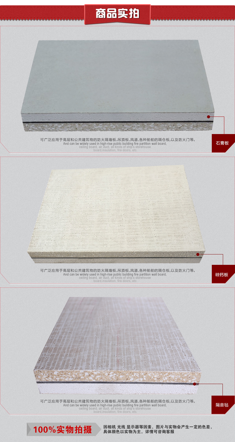 8 、隔音板防火:采用超细玻璃棉,由于其熔点高,不可燃,完全满足环保和防火规范的要求,防火等达 A 级。